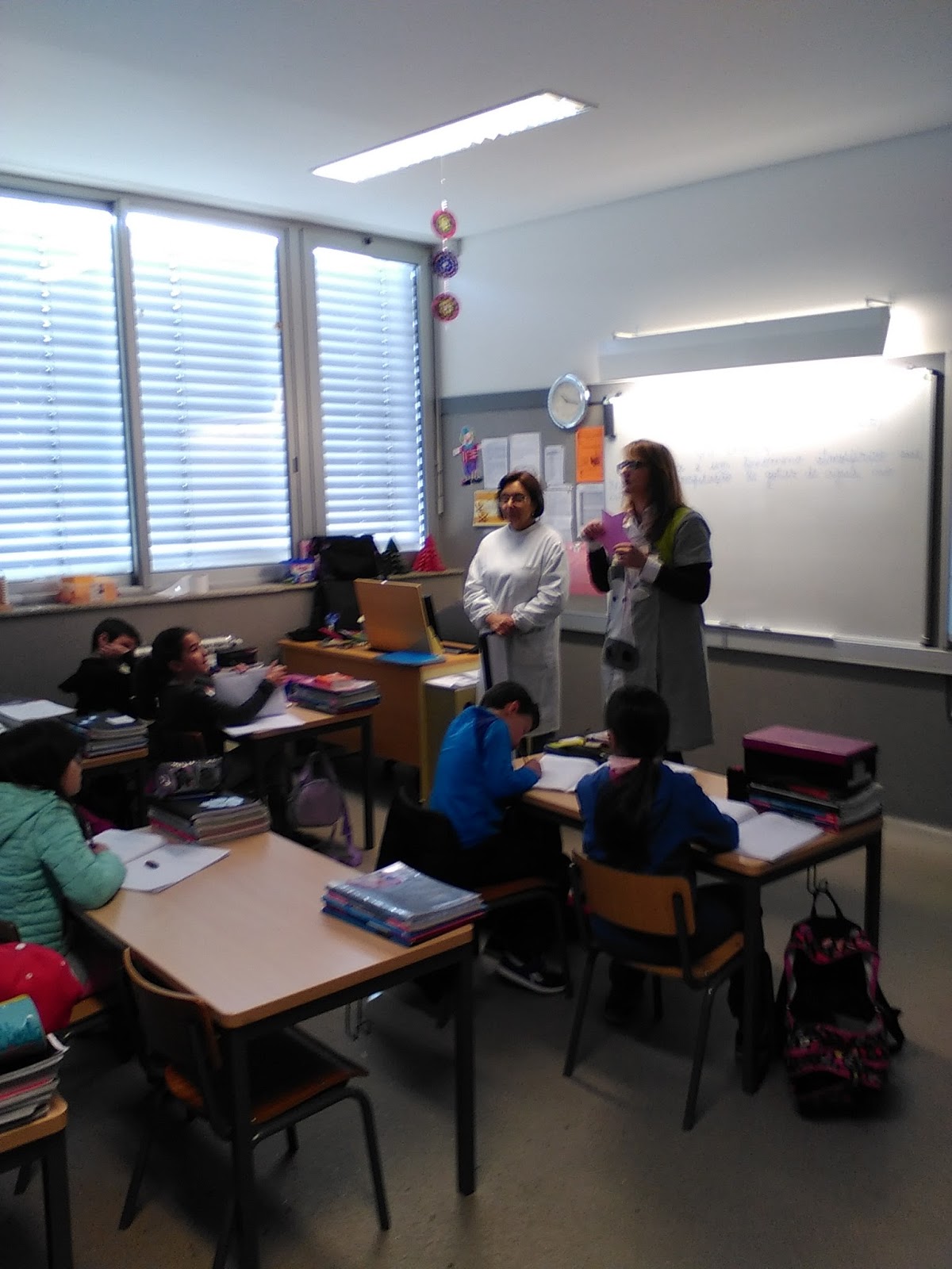 A professora Isabel Rodrigues e a professora Fátima Correia deslocaram-se à nossa sala para apresentarem a capa de um livro. Com a imagem e a escassa informação da capa projetámos que história seria. Sabiamos que falava de uma fada e de um mago.
